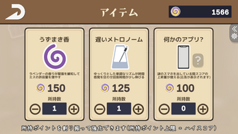 プレイで稼いだ最高スコアに応じてアイテムを購入可能です。